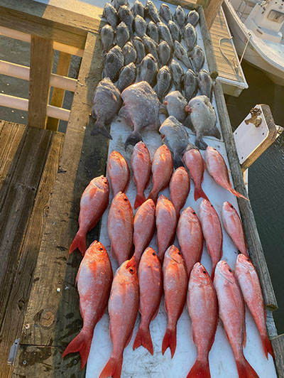 - Autumn Season - September through November: Sharks, Ladyfish, Redfish, Black Drum, Sheepshead, Trout, Whiting, and Flounder nearshore. King Mackerel, Grouper, Amberjack, and a mixed bottom species offshore.
